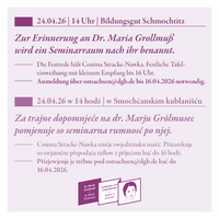 Zur Erinnerung an Dr. Maria Grollmuß wird ein Seminarraum im Bildungsgut Schmochtitz nach ihr benannt. Die Festrede hält Cosima Stracke-Nawka. Festliche Tafeleinweihung mit kleinem Empfang bis 16 Uhr.